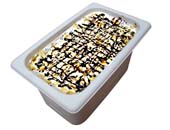 アメリカの子供の大好物、ピーナッツのジェラートにたっぷりチョコチップ、アーモンドスライスをまぜこみ作りました。ちょっと甘めだけどおいしいジェラートです。