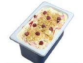 カスタードクリームのジェラートにパイ生地、苺ジャムを混ぜこみストロベリーをサンドしました。お口の中で広がる甘みと苺の香りがたまらなくおいしいジェラートです。もう10年も前からの定番中の定番です。