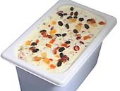 ミルクをたっぷり入れてつくったカッターサのジェラートに、グランマルニエリキュールに漬け込んだドライフルーツをちりばめ、本格的なイタリアンジェラートに仕上げました。