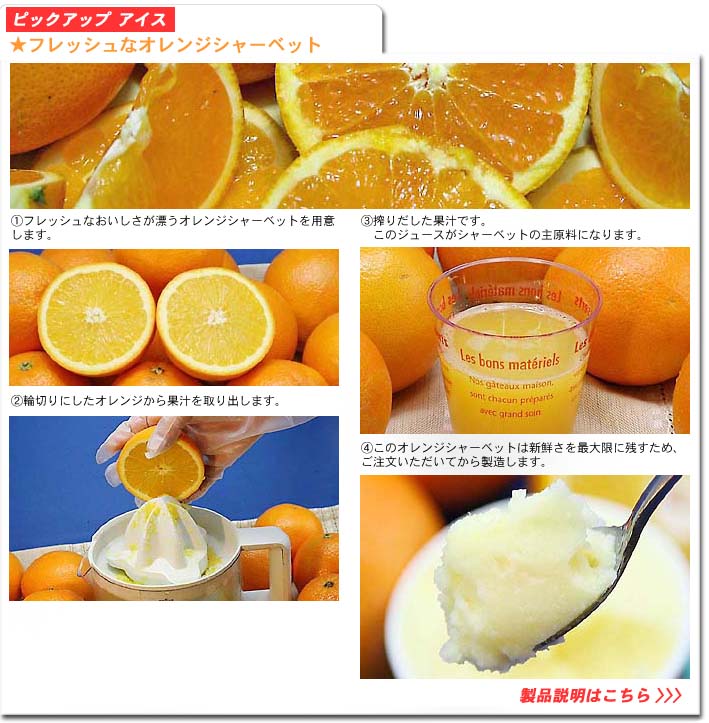 たくさんの果実を使って作った本格的本物のシャーベットです。 |