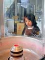 出てきたわたあめを、スティックでまわしながら、からめていきます。