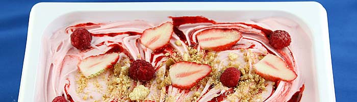日本の生で食べる苺はほんとうに美味しいですね。でも市販されている日本の苺アイスクリーム味は、いまひとつです。この苺アイスクリームはアイスクリームの本場イタリアよりおいしい苺のペーストを輸入し、入れて作っています。イタリアでも苺のペーストはたくさん販売され、各種メニューにより使い分けて製造しております。本場の本格的な苺のアイスクリームをお楽しみください。 |