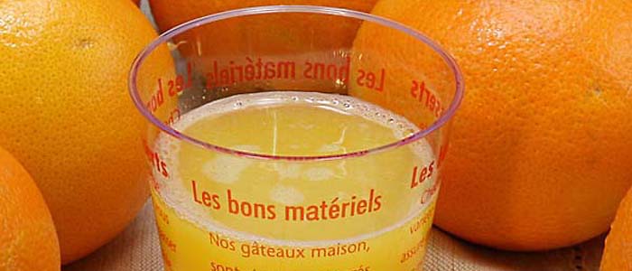 ▼搾りだした果汁です。このジュースがシャーベットの主原料になります。 |
