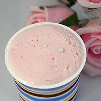 カップの蓋をあけると、かすかにバラの甘い甘い香り。スプーンで口に入れると、さっと広がるバラとミルクの甘みとほどよい口どけ。そして、喉ごしに残るバ