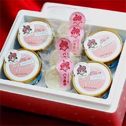 中身はバラのジェラート140ml×4個、バラのジェラート入りモナカ35ml×4個。